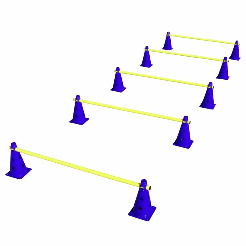 Das Steckhürden-Set ist vielseitig einsetzbar. Es kann als Hürde sowohl zum Slalom-Training, als auch zum Cavaletti-Training eingesetzt werden. Die Kegel ermöglichen drei verschiedene Stangenhöhen, sowie die Stangenbefestigung in vier verschiedene Richtungen. Die Stangen können einzeln auch für Bodenarbeit genutzt werden. Das Set eignet sich auch für die Physiotherapie, speziell für ältere Hunde.