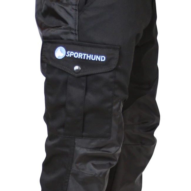 Die Hose ist aus Baumwollmaterial gefertigt, sowie mit wasserabweisendem und kratzfestem Material besetzt