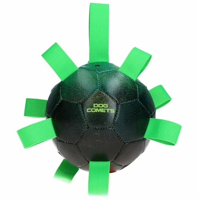Dieser hochwertige Ball besteht aus drei Schichten und ist daher extrem stark. Der innere Ball ist aus robustem Kautschuk, umgeben von einer Baumwollschicht und die Außenseite ist aus PU-Material gefertigt. Dies macht den Ball weich, langlebig und lässt ihn gut springen. Sicher für die Zähne des Hundes und durch die Schlaufen perfekt zum Aufnehmen und Wegwerfen. Der Ball wird einfach mit der mitgelieferten Pumpe aufgepumpt.