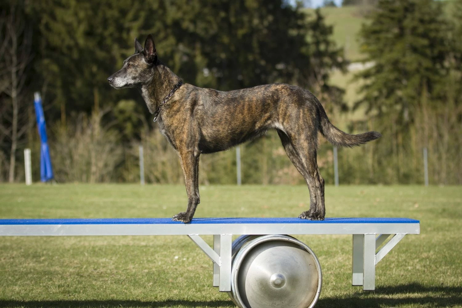 Die Rettungshunde-Faßbrücke der Firma Dogsworld ist nach neuem Reglement und aus einer stabilen Alukonstruktion gefertigt.