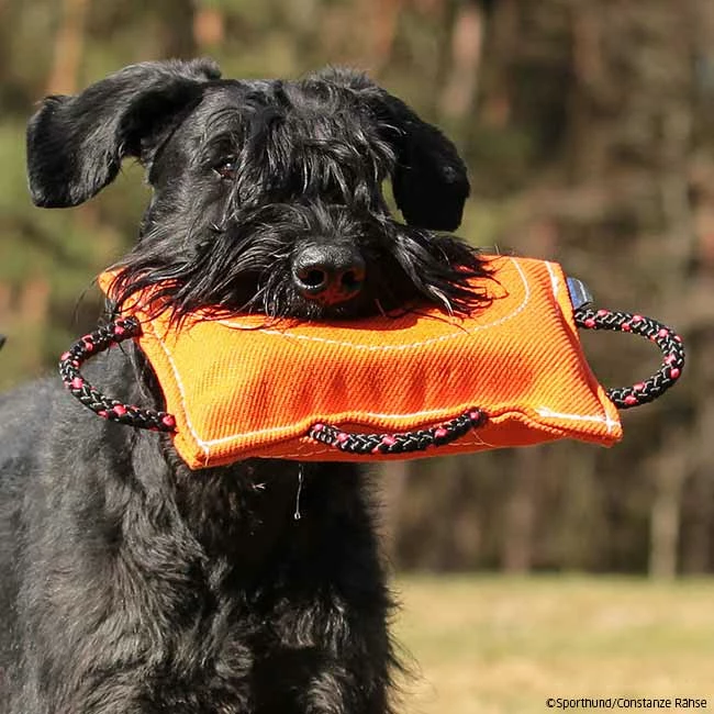 Kleines keilförmiges Beißkissen in handlicher Ausführung mit 3 Handgriffen aus Nylcott.