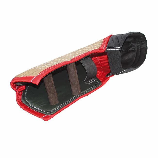 Dieser Junghundarm ist eine Kombination aus einem Hetzkissen und einemJunghundarm. Somit hat man die Ansicht eines kompletten Armes, dieweiche federnde Anbissfläche, 2 Stege um das Kontern imGriffverhalten zufördern und einen Mittelsteg um das Rausdrehen”bei der langen Flucht” zu verbessern. Gerade junge Hunde könnenbei zentralem Anbiss den Arm gut tragen ohne über diesen zustolpern. Auch eine schräge Kopfhaltung wird verhindet was immerein Lösen des Griffes beinhalten würde.
