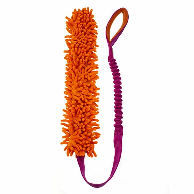 Der Wischmopp für den Hund! Bestätigungsspielzeug bestehend aus einem am Bungee-Seil befestigten, extra langen Mopp. Durch die gepolsterte Handschlaufe ist es für den Hundeführer während des Zerrspiels angenehm zu halten. Das sich ausdehnende Bungee-Seil schont sowohl den Nacken des Hundes als auch die Schulter des Hundeführers.