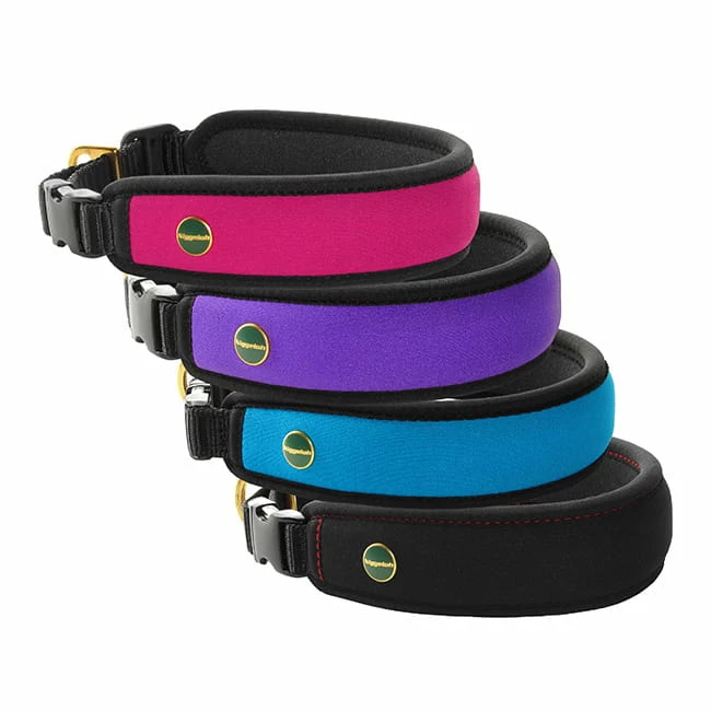 Die Halsung ist aufgrund des dicken Neoprenüberzugs auch für starke Leinenzieher angenehm zu tragen. Ein hoch belastbarer Metallsteckverschluss, ein stabiler Messing-D-Ring und die kunststoffummantelte Metallschiebeschnalle sorgen dafür, dass dein Hund beim Spaziergang immer sicher angeleint ist und zusätzlich noch gut aussieht.