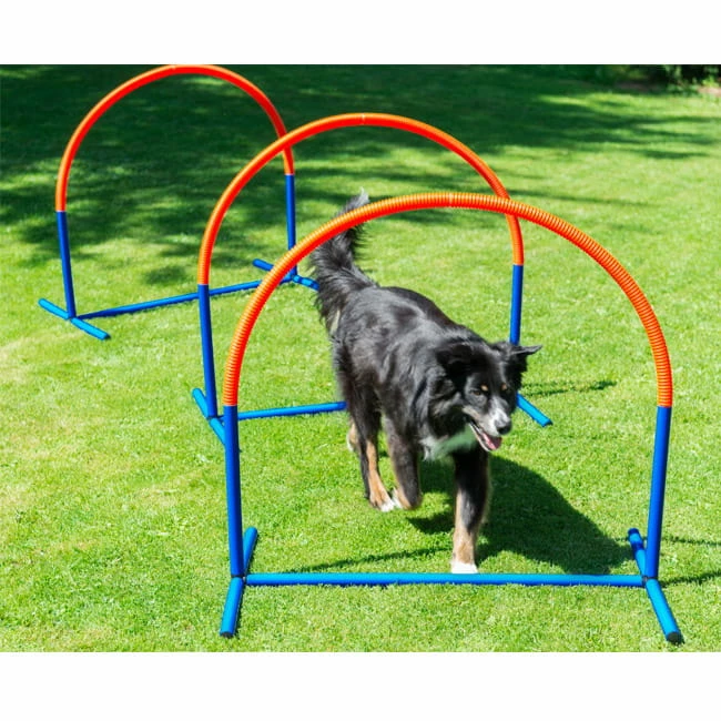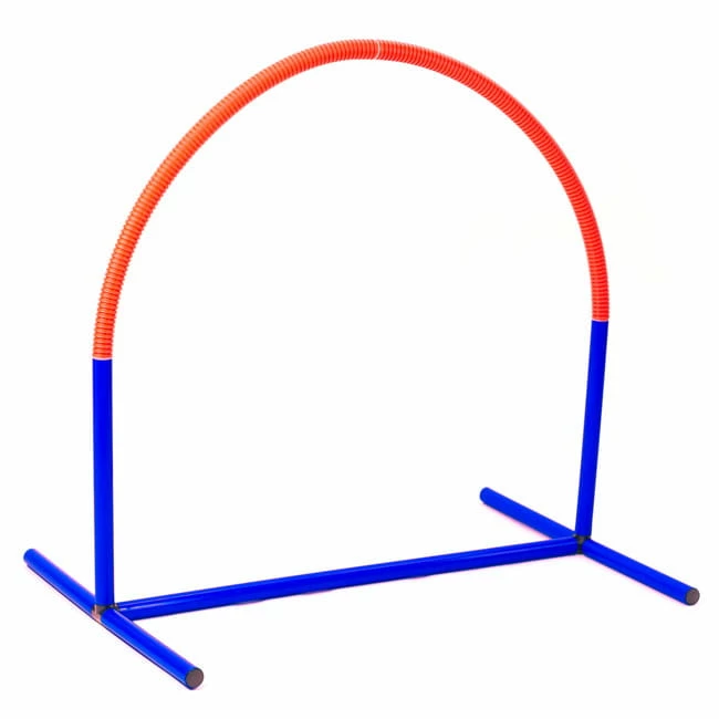 Der Hoopers-Agility Bogen ist eine tolle Aktivität für Hunde fast jeden Alters. Da keine Sprünge verlangt werden, können auch ältere Hunde noch toll trainieren. Unser Hoopers Agility-Bogen wird in einer praktischen Transporttasche geliefert und ist im Handumdrehen aufgebaut. Er besteht aus blauen Kunststoffstangen als Basis und der Bogen wird durch ein orangefarbenes Rohr gebildet.