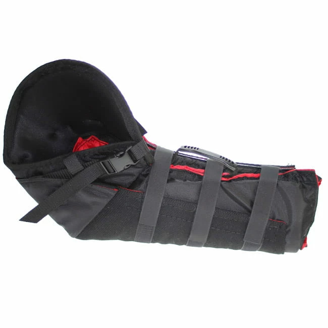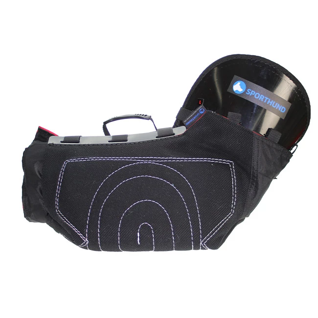 Hetzarm in kurzer und kompakter Bauform. Besonders leicht und mit gutgeformter, keilförmiger Anbissfläche. Manschette austauschbar. Der Helfer kann sich durch die Bauform sehr gut und schnell bewegen. Der Hund lernt durch die schmale Anbissfläche den mittigen Griff. Ideale Fortsetzung des Knut Fuchs Hetzsets. Dieser Artikel ist auch in einer harten Ausführung mit eingearbeiteten Platten lieferbar (7335216-H).
