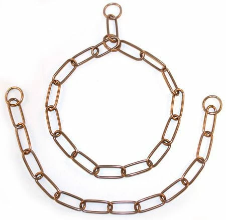 Das Material CUROGAN ist eine Kupfer-Zinn-Legierung und zu 100 % nickelfrei. Es stellt daher auch für Hunde, die auf das Tragen herkömmlicher Ketten bisher allergisch reagiert haben, eine gute Alternative dar. Durch den hohen Kupferanteil haben Curogan-Ketten eine brillante rötliche Farbe, die beim Gebrauch deutlich nachdunkelt.