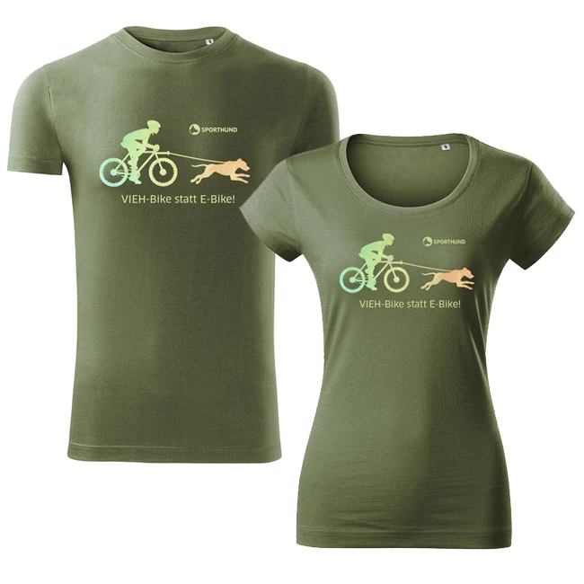 Sporthund T-Shirt “Vieh-Bike statt E-Bike!” in Männer- und Frauenschnitt erhältlich.