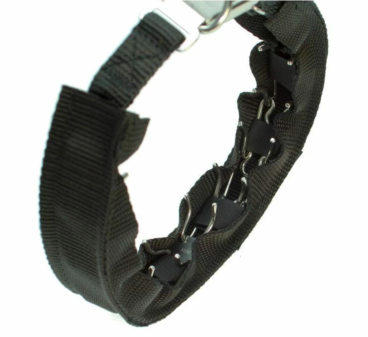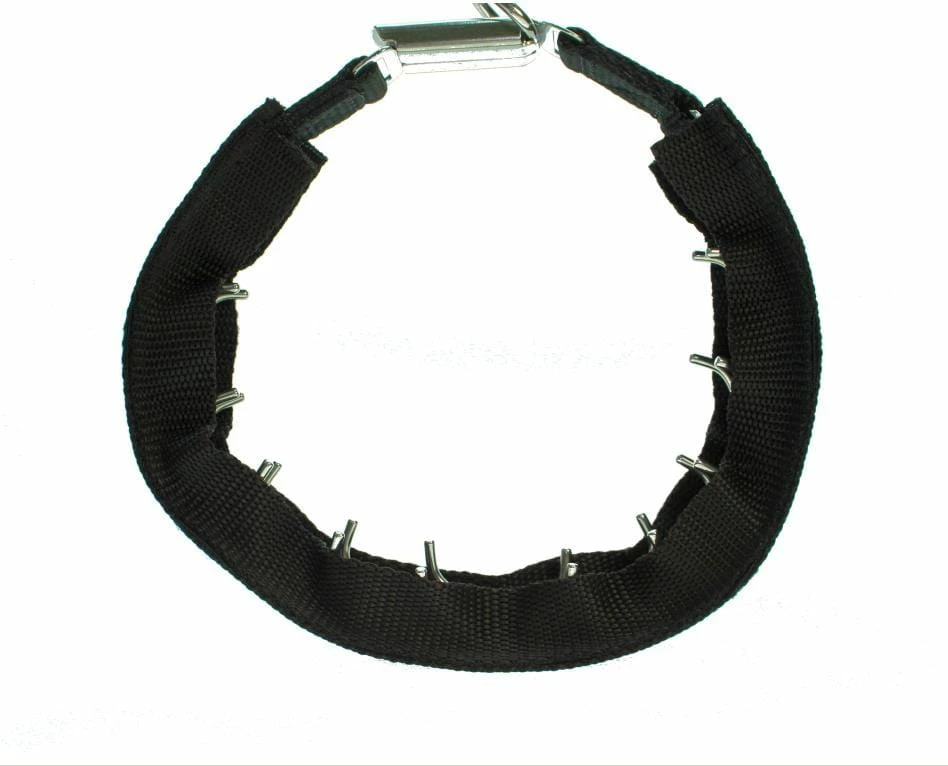 Diese Verkleidung aus Nylon verdeckt das Stachelhalsband nichtnur von vorne, sondern auch seitlich, sodass die Krallen praktischunsichtbar sind. Dennoch bleibt die gewünschte Einwirkungerhalten.